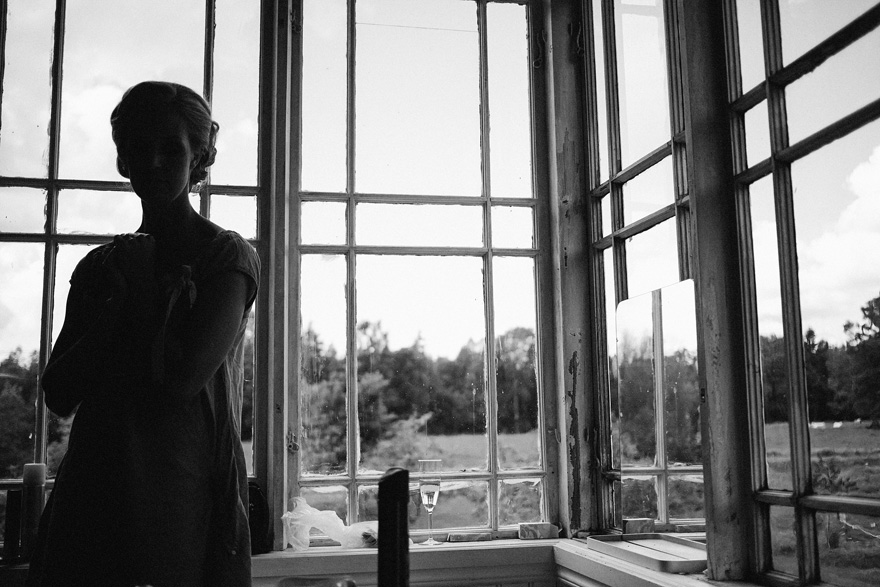 Brud gör iordning håret